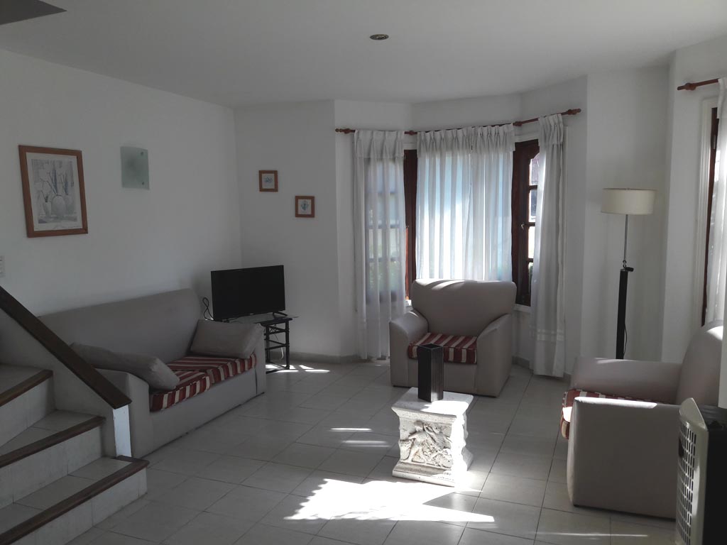 En la planta alta, se ubican 2 habitaciones: una con una cama matrimonial y baño en suite, y la otra con 3 camas individuales. Además, hay un baño completo en esta planta. Las habitaciones están dotadas de amplios placares y luminosos ventanales, ofreciendo un ambiente acogedor y confortable.