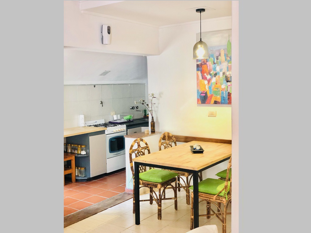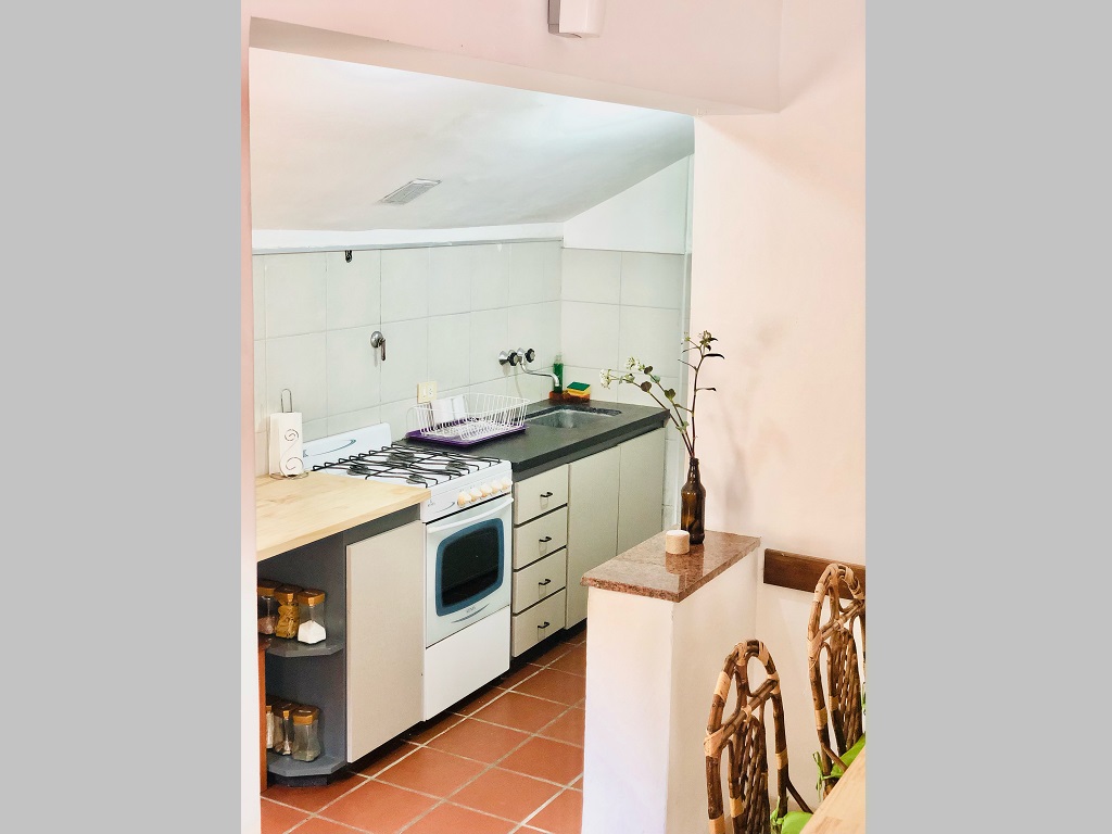 La propiedad también dispone de espacio techado para auto, parrilla y un jardín. Las dos habitaciones incluyen una con cama matrimonial somier y otra con dos camas individuales. Como servicios adicionales, ofrece WIFI, TV LED , alarma, cámaras de seguridad y portón eléctrico.