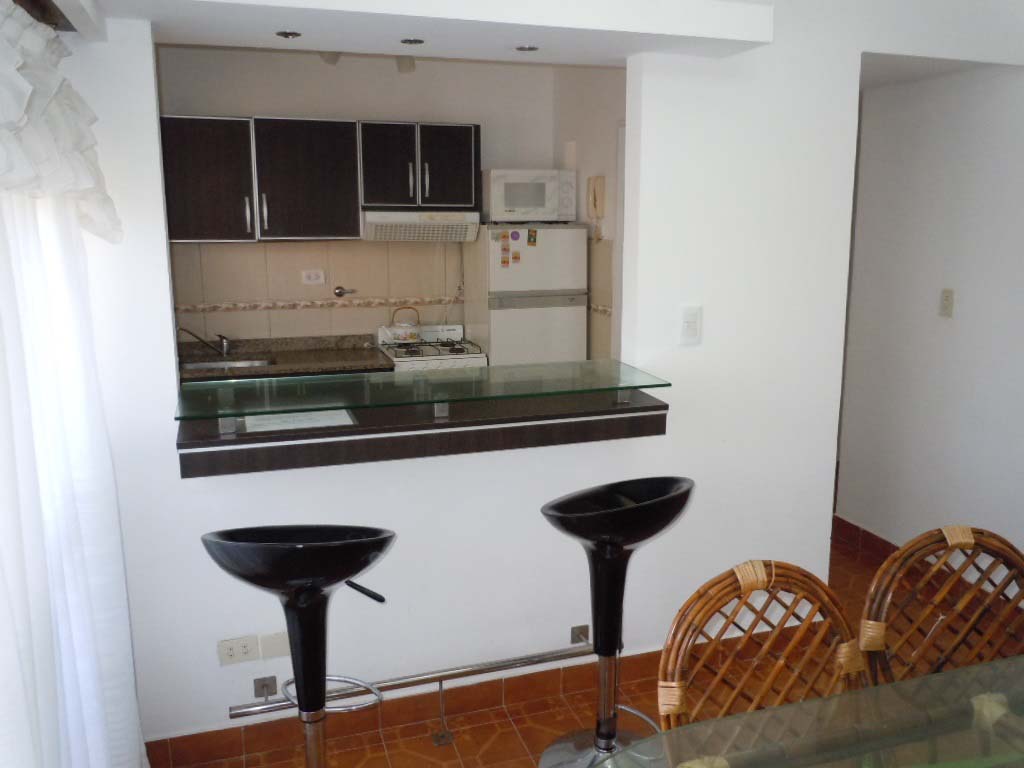 Los departamentos de 3 ambientes ofrecen un amplio comedor con un diván doble que funciona como cama simple adicional. La cocina está completamente equipada con una barra desayunadora y parrilla a gas. Incluye un dormitorio con cama matrimonial y otro con cama individual, así como un baño completo de alta calidad. Además, cada departamento dispone de vajilla completa, microondas, TV con cable y calefacción.